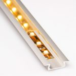 This aluminum profile is flush mount. Application: one of the most popular models profiles It is designed to tie-in furniture, shelves, drywall, wooden partitions, etc., as shown in the example.The profile can be activated to create decorative luminescent bands in the walls, ceiling, floor, lights, work surfaces, shelves, steps, niches.